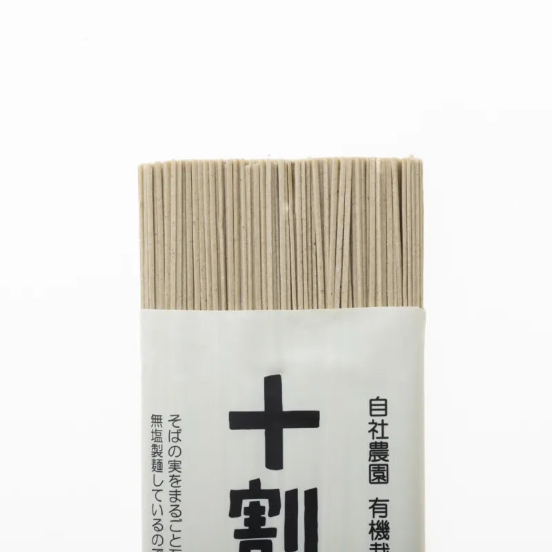有機JAS認証を取得、自社栽培の玄そば全粒粉を100%使用。無農薬栽培し添加物や塩を一切使用しない栄養価の高いおそば。グルテンフリー。