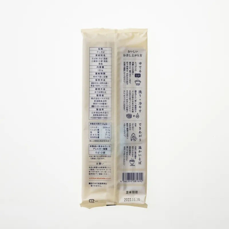 通常市販の乾麺の多くは安価で生産性の良いロール挽きそば粉を使用することが多くありますが、イチカラ畑では全ての乾麺に自社製粉の石臼挽きそば粉を使用しています。